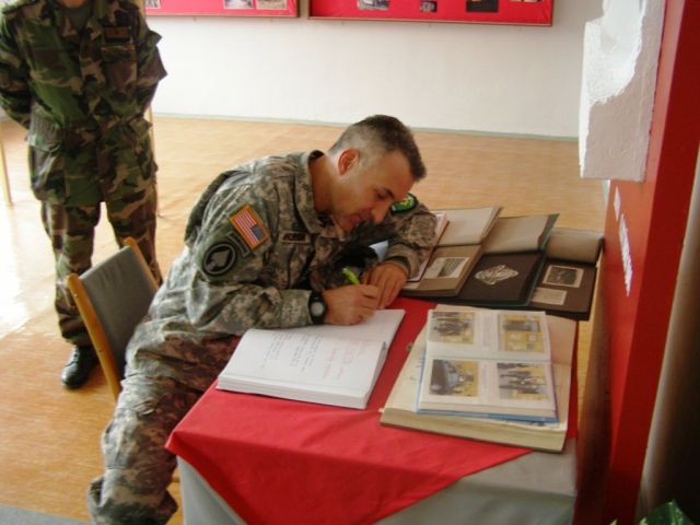 Dnes, 9. novembra  vykonal  pridelenec  obrany USA v SR podplukovník Terry L. Anderson pracovnú návštevu  ženijného práporu pozemných síl v Seredi . Účel pracovných návštev  pána podplukovníka v útvaroch OS SR je prerokovanie možností prehĺbenia spolupráce medzi OS SR a ozbrojenými silami USA.  Koncept návštevy pozostával z brífingu vedeného náčelníkom štábu ženijného práporu majorom Haňom, ukážky špeciálnej techniky a výstroje ženijných odborností, ukážky rozširovania priechodu v mínovom poli ženijnou čatou a prezentácie rozvinutého veliteľského stanoviska prebiehajúceho komplexného štábneho nácviku. Svoje otázky smeroval pán podplukovník najmä k výcviku multifunkčnej ženijnej roty, jej možnostiam a  praktickým problémom v mieste nasadenia na čo odpovedal najmä npor. Jozef Hracho, ktorý prostredie ženijnej jednotky v Afganistane pozná z nedávneho vyslania dôverne. Pracovná návšteva bola ukončená  v miestnosti cti a tradícií ženijného vojska  kde sa podplukovník Terry L. Anderson podpísal do kroniky ženijného práporu Sereď.