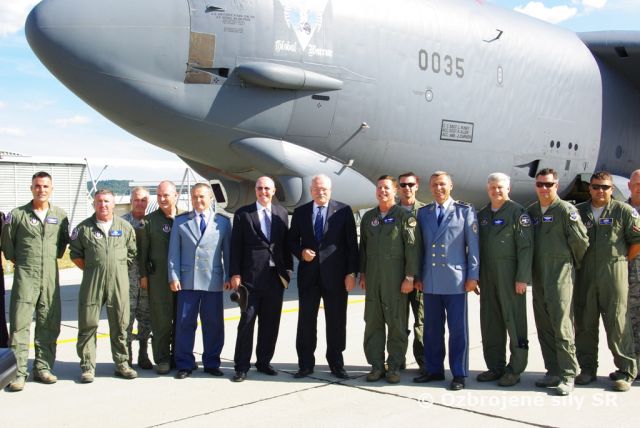 Doobedňajší prílet osemmotorového obra si nenechali ujsť ani  podpredseda vlády a minister vnútra SR Robert KALIŇÁK, minister obrany SR Martin GLVÁČ spolu s náčelníkom Generálneho štábu SR generálporučíkom Petrom VOJTEKOM. Uvedenú delegáciu privítal na leteckej základni Sliač veliteľ vzdušných síl generálmajor Martin BABIAK a veliteľa tejto základne plukovník Vladimír LISÝ.