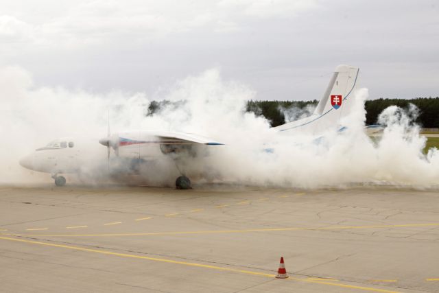 Následne príslušníci vojenskej hasičskej jednotky dk Kuchyňa v spolupráci s jednotkami HaZZ Malacky, ZB HaZZ Malacky a Vojenskej polície predviedli súčinnostné cvičenie - praktickú ukážku zásahu po núdzovom pristátí lietadla a evakuácie zranených osôb.