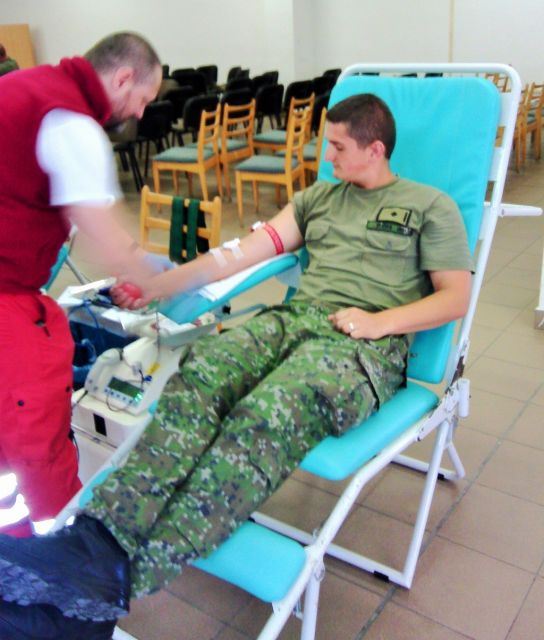 Príslušníci obväziska Ženijného práporu (žpr) Sereď, v spolupráci s Národnou transfúznou službou SR - odberovým centom Nitra, zorganizovali 15. júla v priestoroch kasárni odber krvi.