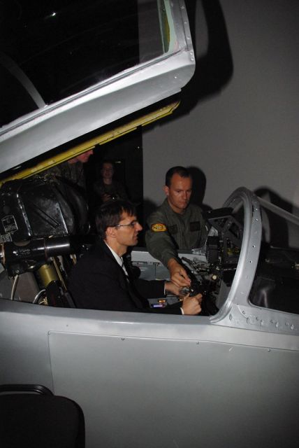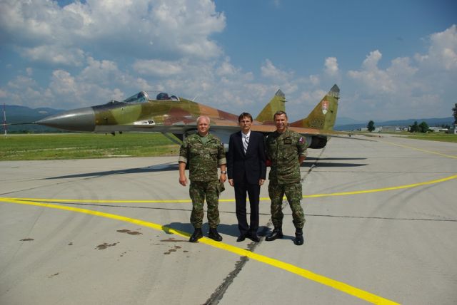 V priestoroch Zmiešaného krídla Sliač boli Ministrovi obrany predstavené letecké trenažery MiG 29, L 39 používané k výcviku pilotov, ktoré si mohol osobne vyskúšať.