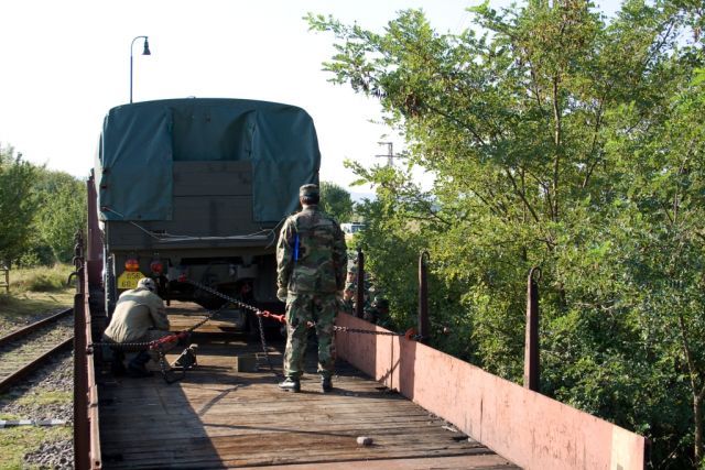 V dňoch 22. a 23. septembra 2011 vykonali príslušníci dopravného krídla Kuchyňa výcvik v preprave po železnici. Výcvik bol rozdelený na dve časti: teoretickú, ktorá prebehla vo štvrtok a praktickú, ktorá sa uskutočnila v piatok. V rámci teoretickej časti sa príslušníci dopravného krídla mohli dozvedieť mnoho informácií, ktoré sú potrebné pre úspešné zvládnutie prepravy po železnici. Nechýbala ani grafická ukážka postupu stavby univerzálnej oceľovej rampy alebo vysvetlenie, ako správne navádzať techniku pri vagónovaní. V piatok prišiel čas, kedy mohli vojaci uplatniť vedomosti načerpané z prednášky aj v praxi. Po nástupe a oboznámení sa s bezpečnostnými opatreniami sa začalo so stavbou univerzálnej oceľovej rampy. Nasledovala ukážka odstrojovania vagónu a nechýbalo ani vysvetlenie správneho ukotvenia techniky. Cieľom výcviku bolo oboznámiť prítomných so zásadami pri preprave po železnici a formou praktického výcviku tieto zásady precvičiť a osvojiť na požadovanej úrovni.