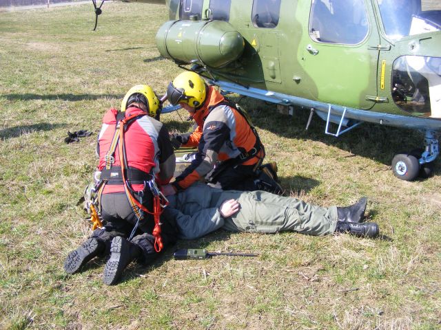 Záchranu posádky havarovaného vrtuľníka nacvičovali 15. apríla neďaleko obce Radvanovce príslušníci skupín Pozemnej pátracej služby a Leteckej pátracej a záchrannej služby podľa krízového scenára.