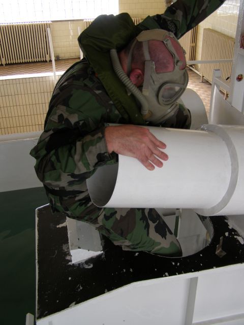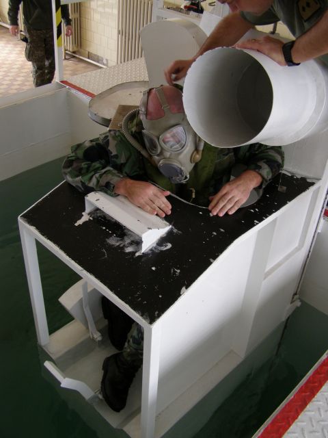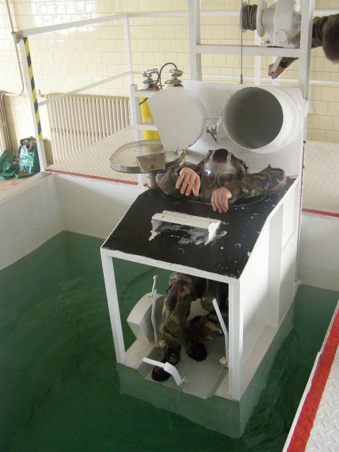 Vodiči tankov si počas tohto cvičenia mohli precvičiť a vyskúšať aké to je, keď sa tank dostane pod vodu a ako sa z neho potom za pomocou dýchacieho prístroja dostanú von. K tomuto precvičeniu slúži maketa tanku, ktorá sa s vodičom ponorí do vody v bazéne špeciálne určenom na tento účel.