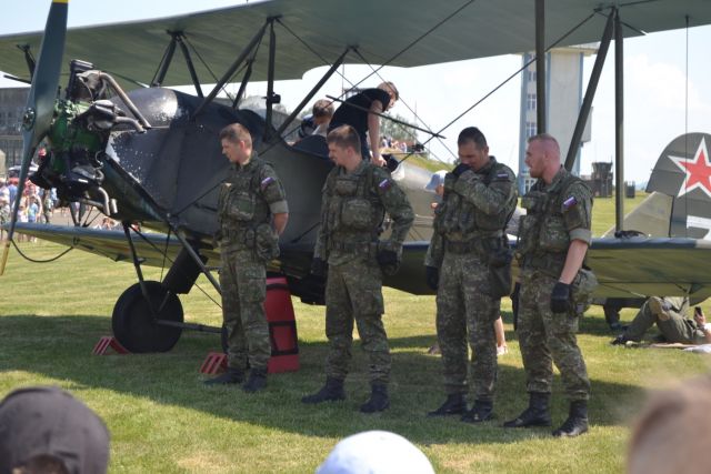 V hangári boli pre zvedavcov na stoloch pripravené modely plastikových lietadiel a tiež ukážky moderných strelných zbraní v podaní útočnej pušky Bren 805 s granátometom, pištoľ Glock 17 alebo CZ 09. Nové zbrane doplnil dobre známy samopal vz.58, pištoľ vz.82, guľomet vz.59 a RPG-7. Popri zbraniach si mohli deti vyskúšať nepriestrelné vesty, kevlarové prilby a spojovacie prostriedky RF-13.