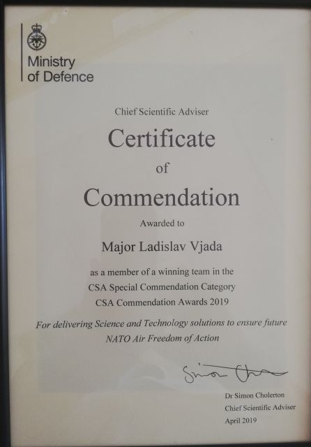 Svojim profesionálnym prístupom prispeli mjr. Tomáš Schóber, mjr. Tomáš Kurpaš a mjr. Ladislav Vajda k tomu, že závery cvičenia MACE XIX boli vyhodnotené ministerstvom obrany Spojeného kráľovstva Veľkej Británie a Severného írska ako významný prínos v oblasti vedy a technológií pre NATO.