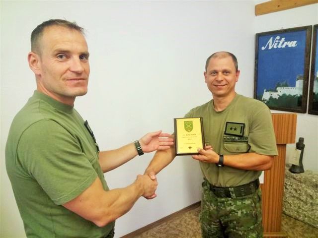 Víťazovi súťaže odovzdal pamätnú plaketu „Najlepší príslušník spojovacích odborností“ zástupca veliteľa práporu major Gabriel Janovics.