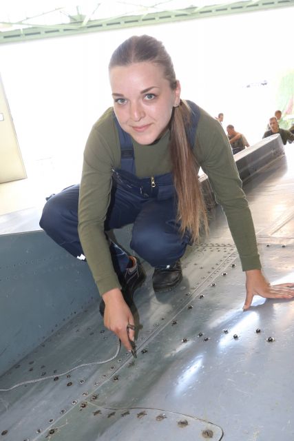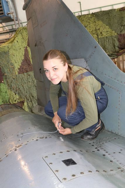 Rodáčka zo Želiezoviec, 22-ročná slobodníčka Karin Barbara Kováčová je jedinou ženou medzi vyše osemdesiatkou technikov technickej letky opráv a predpísaných prác (TLOP) taktického krídla Sliač.