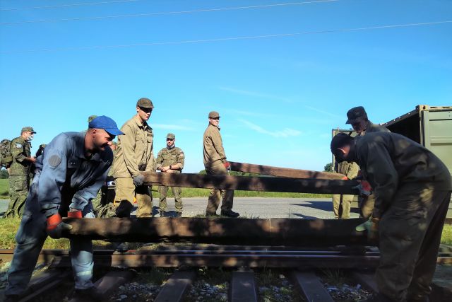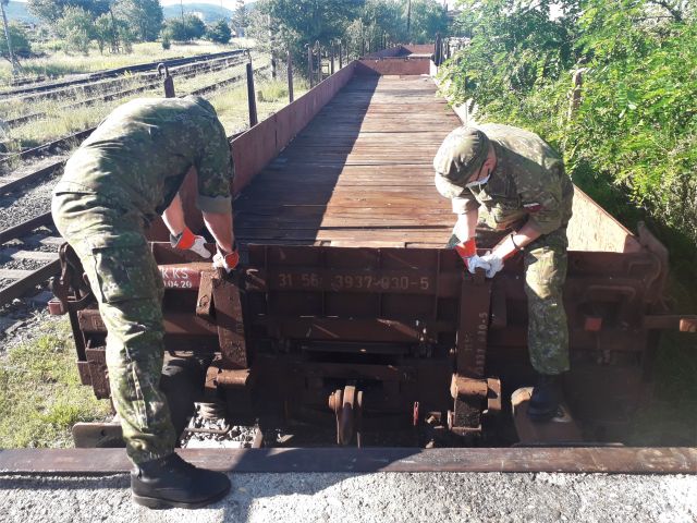 Výcvik v preprave po železnici V dňoch 7. - 8. júla sa v dopravnom krídle Kuchyňa uskutočnil výcvik v preprave po železnici. Prvý deň bol zameraný na teoretickú prípravu, ktorá prebiehala na letiskovom klube pod vedením príslušníčky Národného centra vojenskej dopravy. Nasledujúci deň bol vykonaný praktický výcvik v priestoroch vojenskej železničnej vlečky Kuchyňa. Po vykonanom nástupe boli príslušníci dopravného krídla rozdelení do šiestich pracovísk: - zabezpečenie ochrany a obrany síl a prostriedkov na železničnej stanici, označenie a povinnosti funkcionárov vojenského prevozu a celodennej zmeny vojenského prevozu na železničnej stanici a pri preprave, - výstavba univerzálnej nakladacej oceľovej rampy, - preberanie a odovzdávanie železničných vozňov, príprava železničných vozňov na nakladanie techniky, - ochrana materiálu a techniky počas železničnej prepravy, vybavenie a praktická ukážka činnosti technického sprievodcu alebo ochrannej zmeny - výcvik vodičov a veliteľov vozidiel pri pohybe techniky na železničných vozňoch, zásady navádzania techniky, - upevňovanie techniky na železničných vozňoch v súlade s platnými štandardami a predpismi. Príslušníci dopravného krídla k tomuto zamestnaniu pristupovali zodpovedne, čo ocenilo aj velenie dopravného krídla. Veríme, že nadobudnuté poznatky budú profesionálni vojaci schopní aplikovať aj v reálnej situácii.