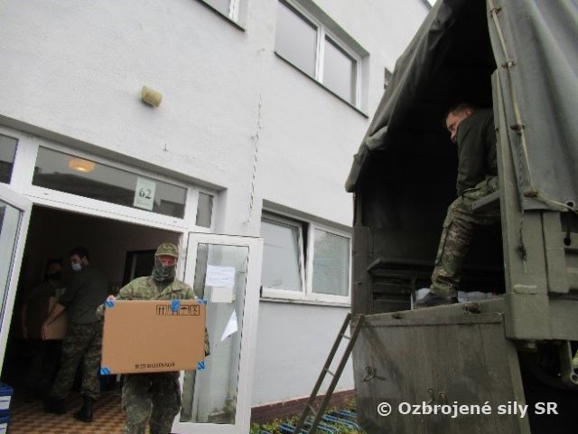 V priestoroch letiskového klubu taktického krídla Sliač prebiehal počas víkendu výdaj materiálu potrebného pre zabezpečenie plošného testovania. Z tohto miesta boli materiálom zabezpečované všetky okresy regionálneho veliteľstva Zvolen a taktiež Domovy sociálnych služieb, Centrá pre rodinu a nemocnice.